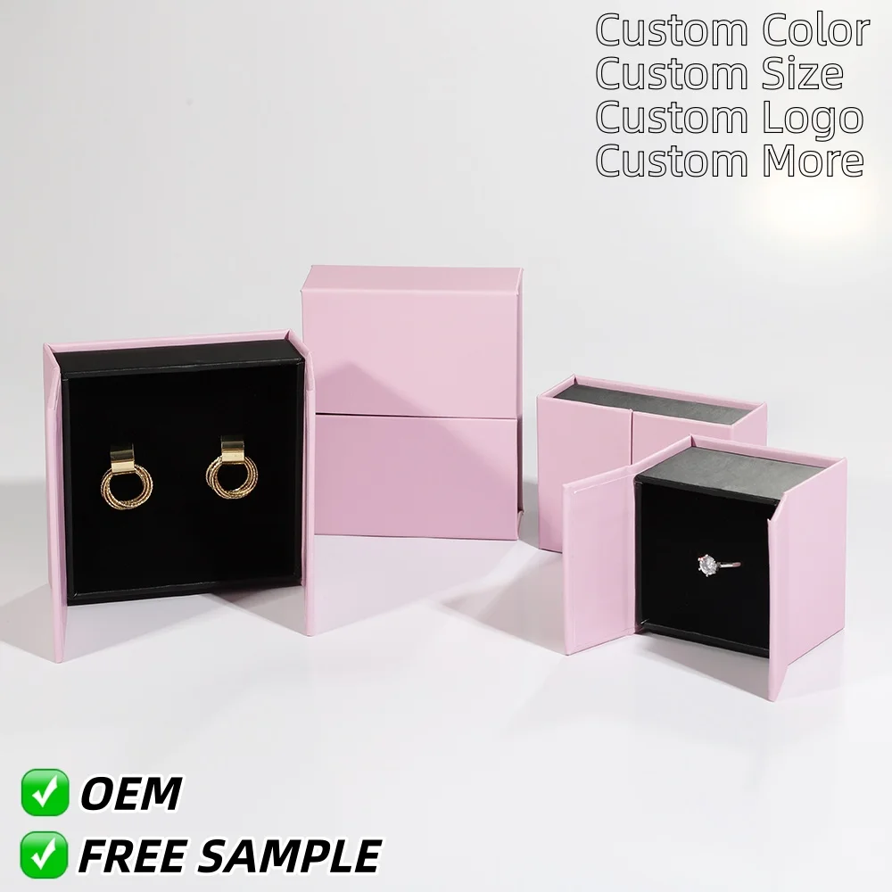 Elegant double-door jewelry box with secure magnetic closure. Features a plush black EVA insert for protection, customizable spot color printing, and a choice of gloss or matte lamination for a premium presentation.