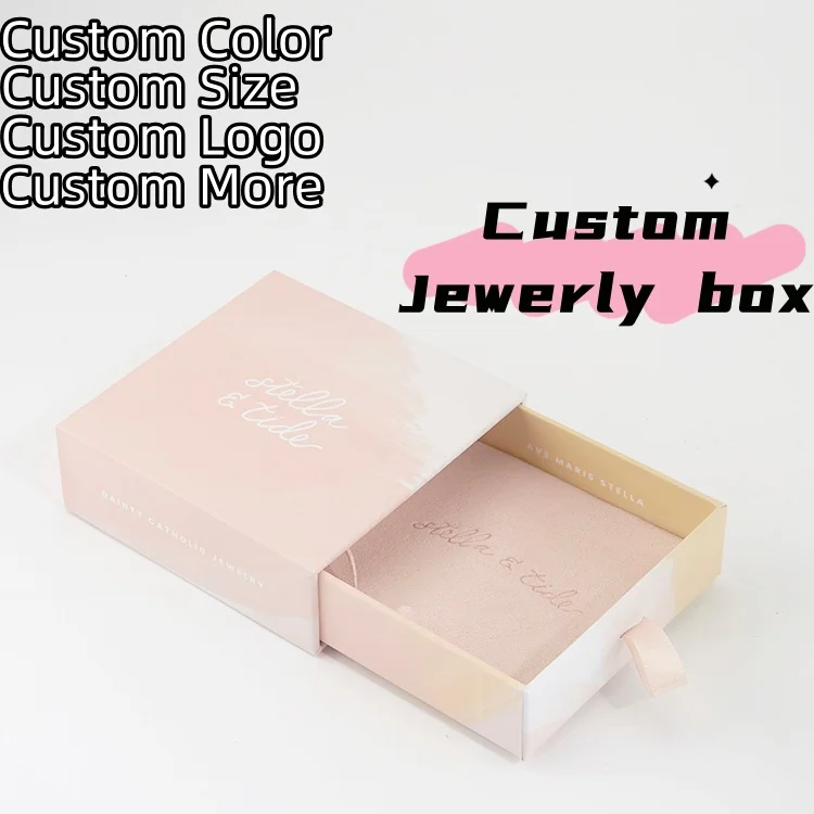 One piece drawer jewelry box with built-in fixed cardboard and ribbon handles, paired with an exclusive velvet bag. Support customized spot color printing, provide options for glossy/matte film coating, with a premium touch and smooth opening and closing, perfectly suitable for necklace, ring and other jewelry storage and gift scenes.